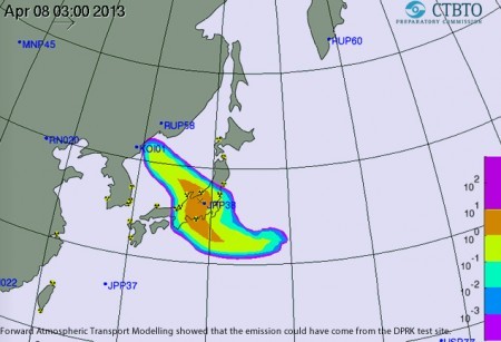 북한이 2월 12일 핵실험후 4월 8일 외부로 핵실험물질을 누출한것으로 보입니다..