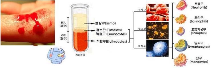 혈액을 원심분리기에 넣고 돌리면 혈장과 혈구로 나눠진다.