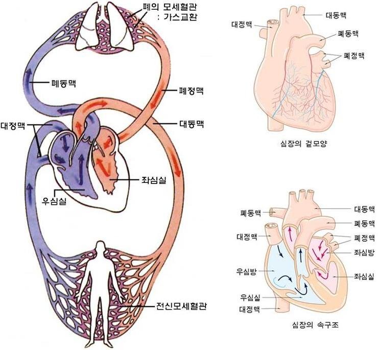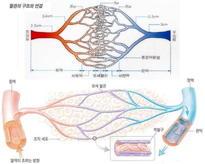 산소와 영양을 공급하고 세포조직에서 발생된 탄산가스와 불필요한 물질들을 모아 심장으로 보내게 된다.