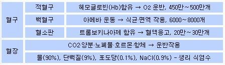 이 두 가지 모두 사람 몸속에 존재하는 각 세포들에 대해 영양을 공급하고, 대사작용을 하도록 해주며, 이 때 생기는 노폐물을 옮기는
