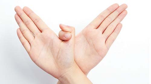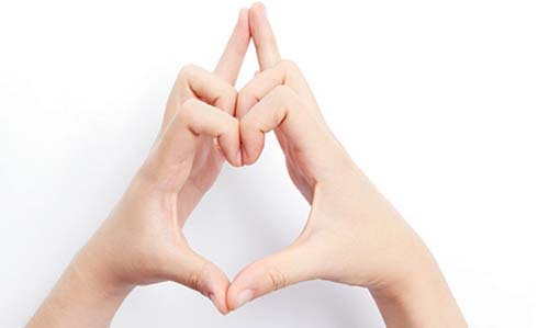 엄지를 나머지 손가락의 안쪽으로 넣은 채 양손을 가볍게 주먹을 쥔후 양손을 붙인 뒤