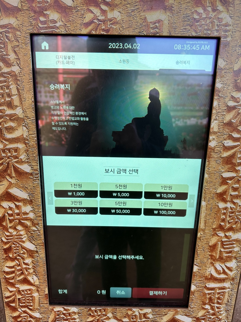 디지털 키오스크로 시주하면 부처님이 알까요 ㅎ
