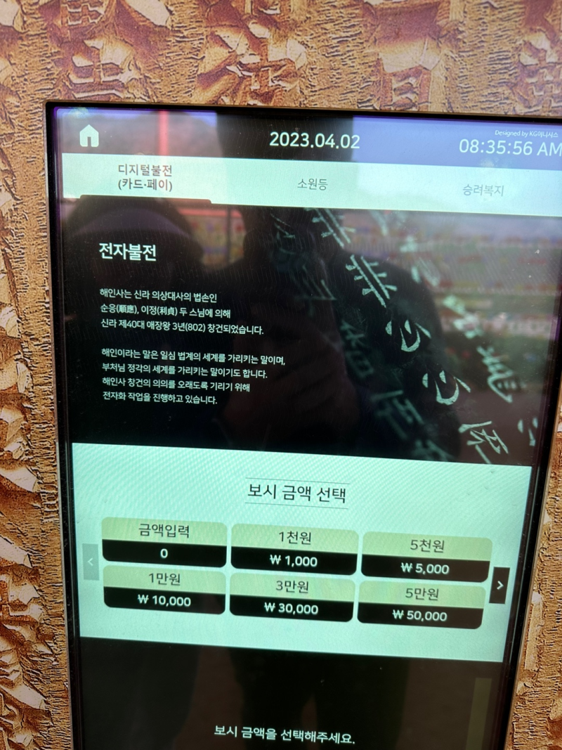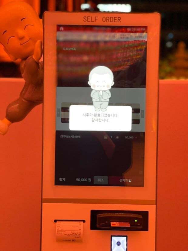 요즘 절에서 시주 받는 방식이 디지털 키오스크로 바뀌었네요