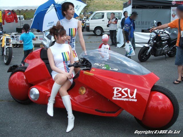일본 애니메이션으로 유명한 ‘아키라’에서 나오는 주인공 가네다의 바이크를 완벽 재현했습니다. 붉은색 색상인 이 바이크는 Masashi Teshima가 7년을 걸쳐 완성한 재품입니다. 디자인을 완벽하게 재현하였고 심플한 스타일과 프레임으로 쿠로모리 강철을 사용한 오리지널 제작품 입니다. 도쿄 모터사이클쇼에 등장하여 세계에 알려지게 되었으며 가네다 바이크 스타일의 커스텀 바이크 ‘STINGRAY’가 발매되었지만 비공인이라고 합니다. 하지만 이 가네다 바이크는 아키라 작가인 오오토모 요시히로씨나 출판사 고단샤 등에게 양해 얻은 공인 바이크입니다. 수랭 4스트로크 2기통 250cc 엔진을 장착하였고 또한 DVD 내비게이션 시스템을 장착하는 등의 첨단 편의장비를 갖추었습니다. 휠에 달린 볼이 인상적이네요