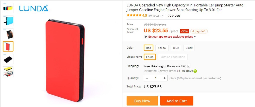또 시동이 안걸리는 상황이 발생 할 수도 있고, 핑계 삼아 알리에 저렴한 걸로 점프스타터를 주문 했습니다.
