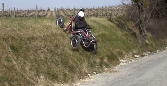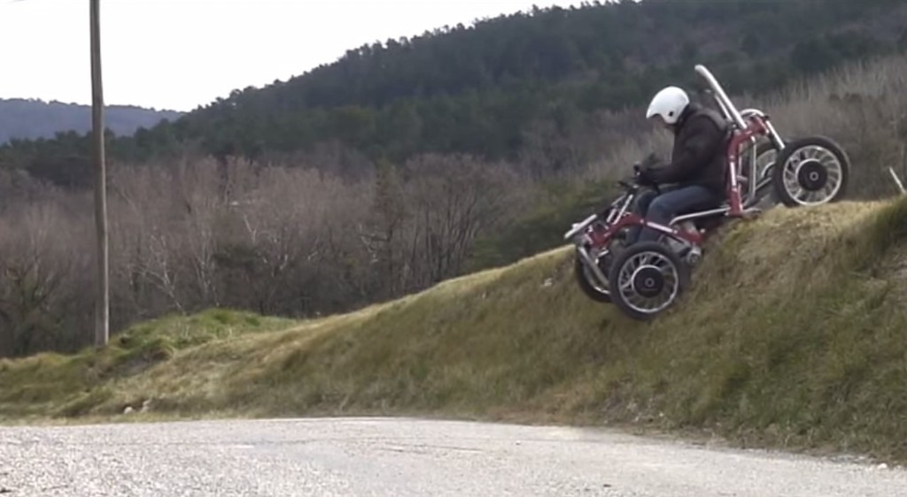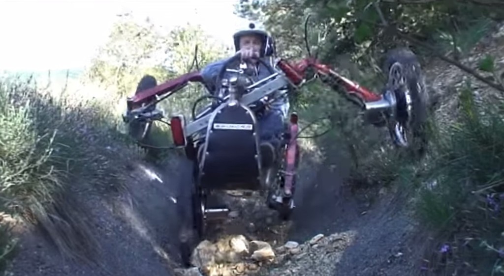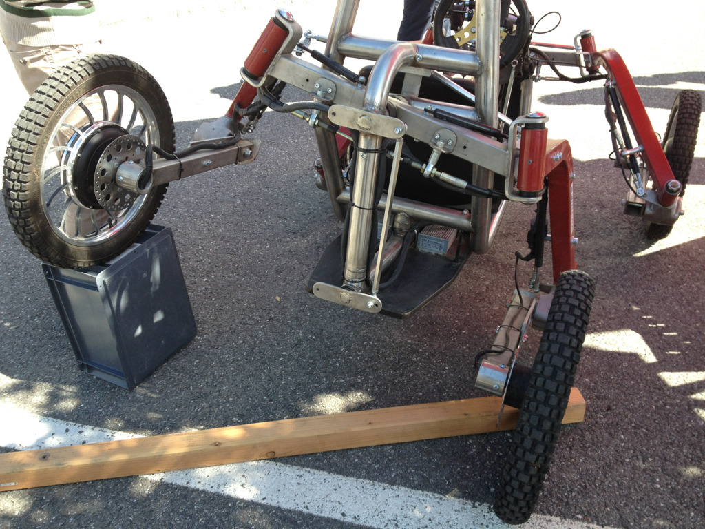 각 타이어는 모터가 내장된 전륜 구동 차량으로, 4륜을 지지하는 팔의 가동 범위는 매우 넓고,