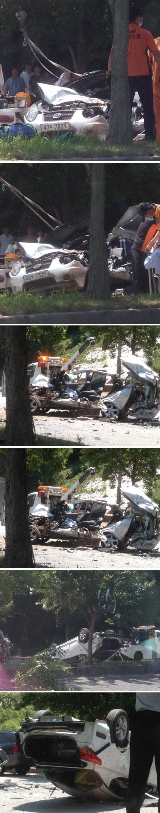 경차가 찌그러지는걸 넘어 다 뜯겨나갔는데 참 처참합니다