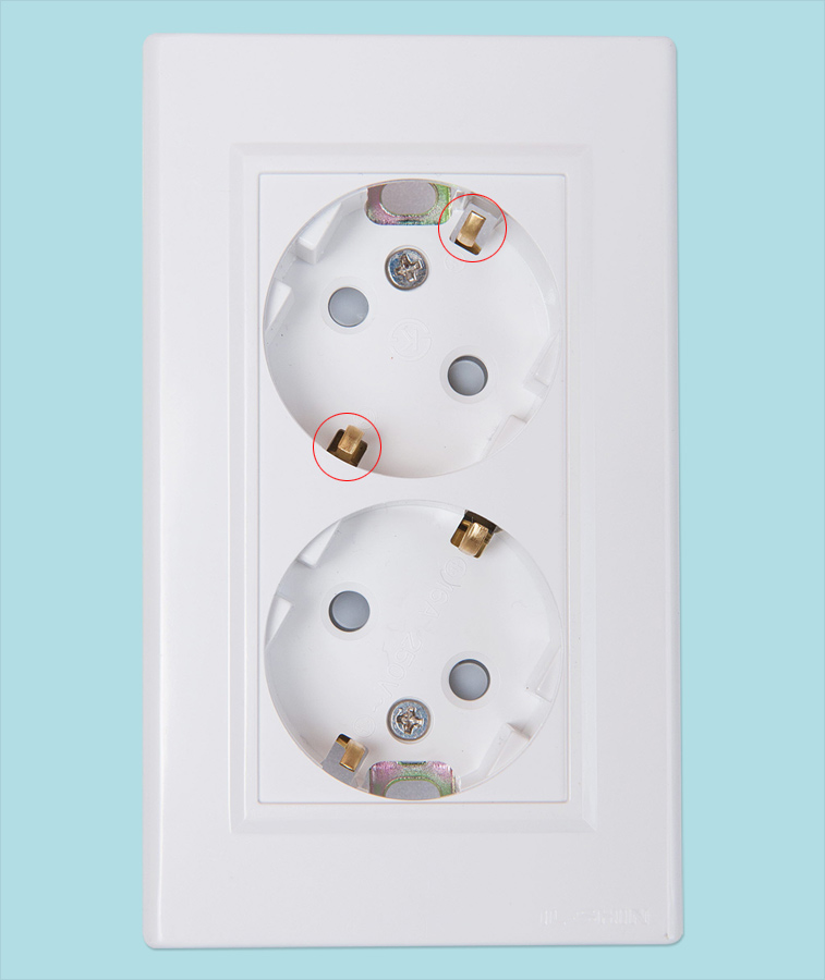 전기 콘센트 제품 중에는 녹색 접지선도 나사못으로 연결하지 않고 다른 전기선과 마찬가지로 접지선을 전기 콘센트 본체에 직접 꽂아 연결하는 제품도 있다. 다른 전선들과 마찬가지로 녹색 버튼 옆의 구멍에 녹색 접지선을 삽입해 연결하고 뺄 때는 녹색 버튼을 드라이버로 눌러 빼는 방식이다. 구멍이 두 개인 이유는 간혹 접지선이 두 개 있는 경우도 있기 때문이다. 접지선이 하나인 경우는 하나의 구멍에만 연결하면 된다.