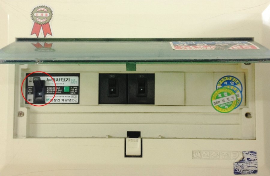 전기작업을 하기 전에 반드시 누전차단기(흔히 두꺼비집이라고 불린다)를 OFF에 놓는다. 항목이 분리되어 있지 않은 차단기면 전체 전원을 꺼놓고 작업하는 것이 좋고, 전기에 대해 자신이 있는 이도 전체 전원을 OFF에 놓고 하는 것이 안전하다. 누전차단기는 대개 현관 벽면이나 신발장 뒤쪽에 위치해 있고, 신규 아파트들은 액자 형식으로 가리개가 덮여 있으니 아래에서 위로 덮개를 열면 된다.