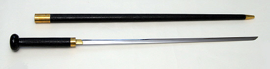 칼집은 화이버글라스로 제작한 지팡이 칼로 칼날은 단면이 삼각형인 찌르기