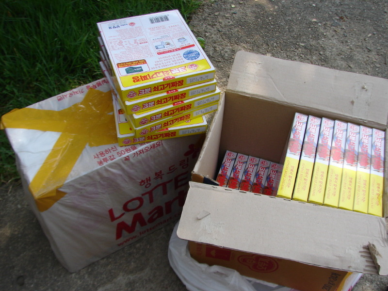 저는 대형마트에 가서 이리저리 둘러보다 1+1행사나 할인행사를 할때 저렴하게 팔면 이렇게 박스채 사오거나 대여섯개씩 사와서 비상식량으로 재워놓습니다만