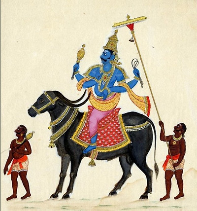 이자나미(좌측)와 이자나기(우측) 부부 / 보스턴 미술관5. 힌두교 / 야마야마는 힌두교 경전에 등장하는 죽음의 신이다. 야마는 검은 물소를 타고 올가미를 들었다. 이 모습으로 세상을 돌아다니며 죽은 자를 저승으로 돌려보내는 일을 한다.