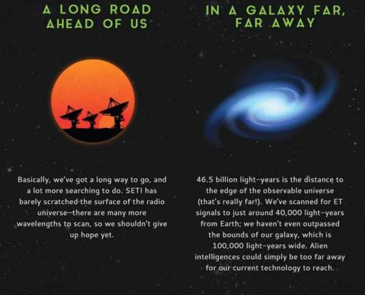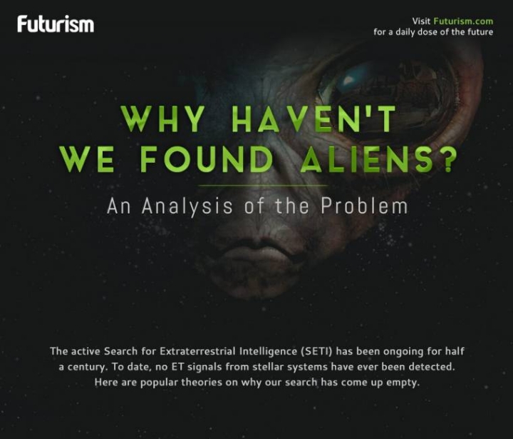 외부 지적 생명체에 대한 연구(SETI)는 50년 동안 진행중이다. 하지만 지금까지, 외부 우주로부터 어떤 외계인 신호도 발견 되지 않았다. 여기 왜 우리가 발견하지 못했는지에 대한 몇가지 유명한 이론이 있다.