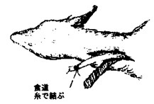 [그림] 식도를 실로 묶는다.
