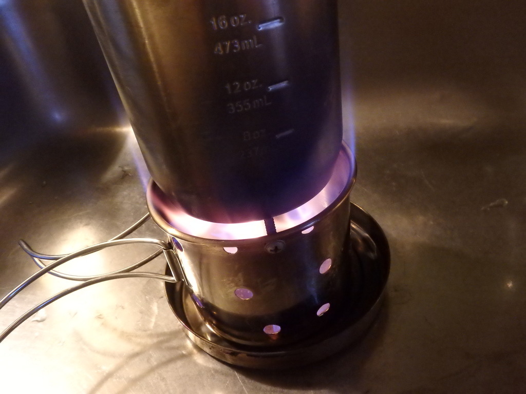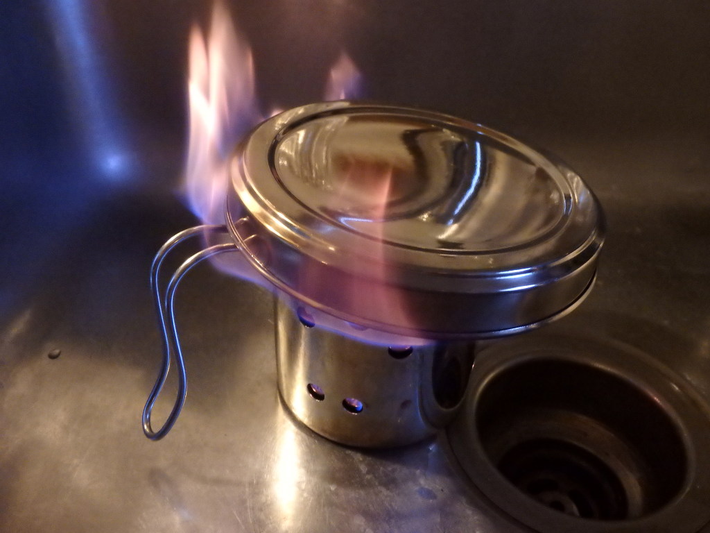 이런 형태의 스토브 사용하는 사람은 나 밖에 없음. 아무도 시도해 보지도 않았고... 물론 구멍 뚫린 형태의 알콜 사용하는 사람은