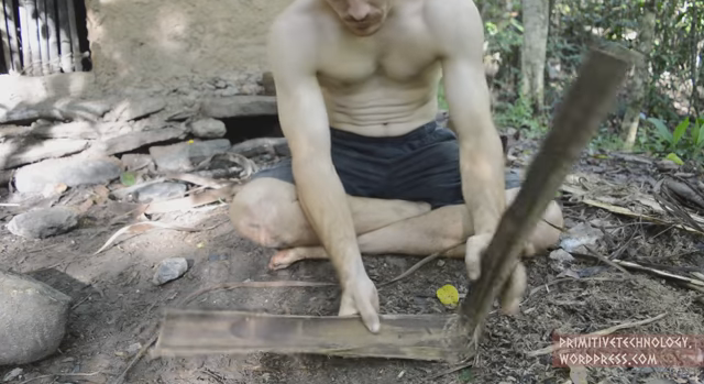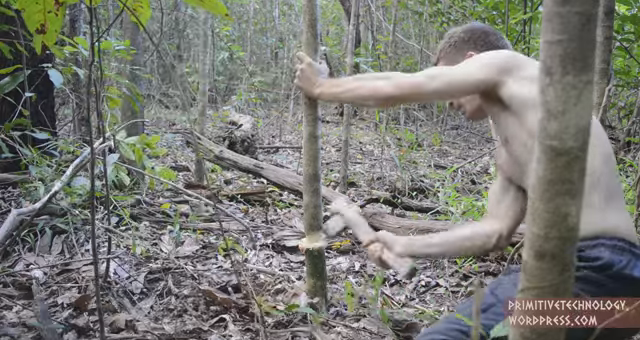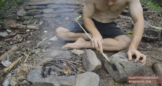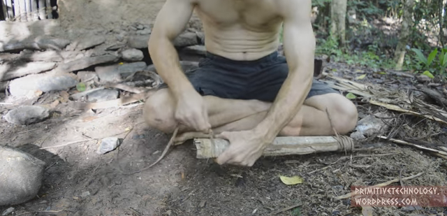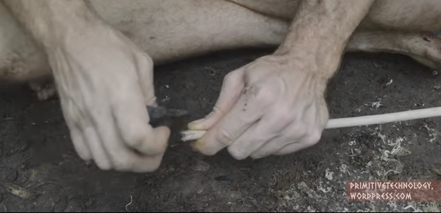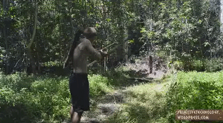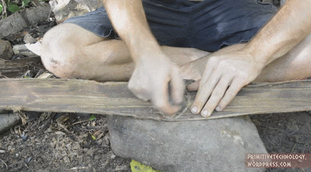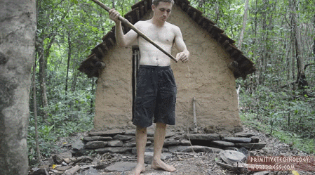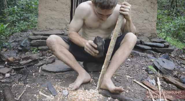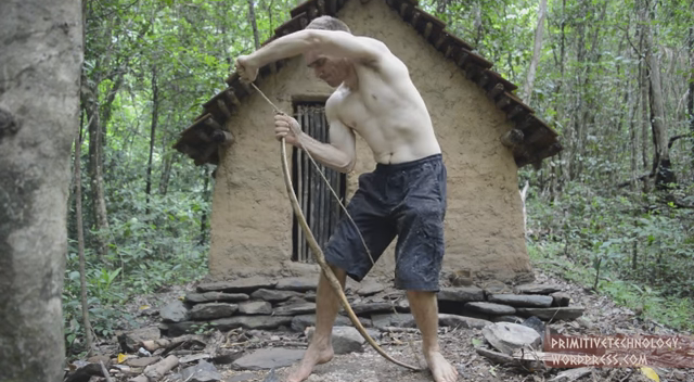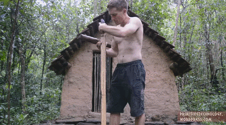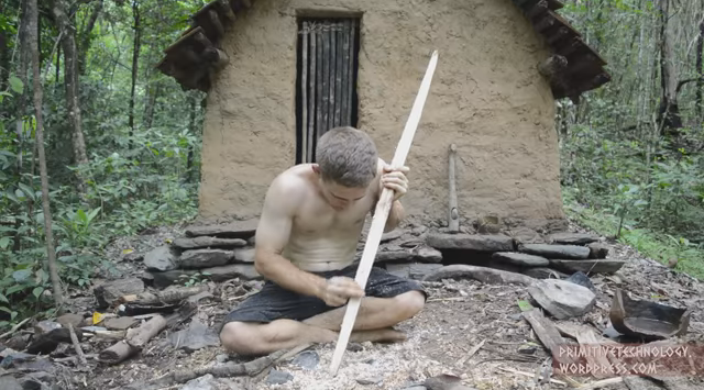 문명의 도구를 사용하지 않고 돌로 도끼를 만들어 나무를 자르고 돌날로 다듬에 활을 만들고,