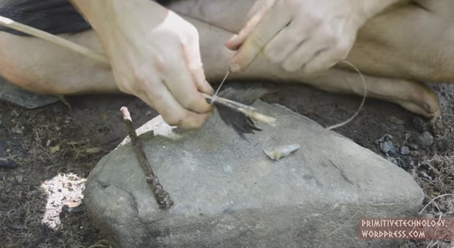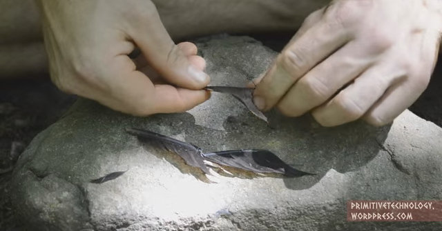 불에 굽고 돌에 갈아 화살 촉을 단단하고 뽀족하게 만듭니다.