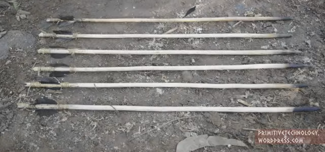 쭉 뻗은 화살에 적당한 나무를 잘라 손질합니다.