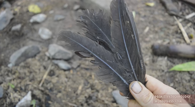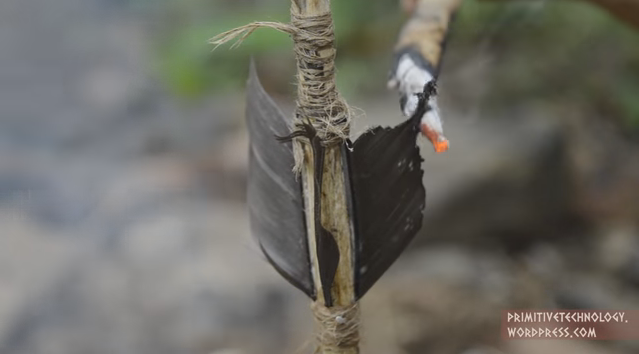 깃털과 나무줄기,나무진 등 천연재료로 화살과 화살통을 만듭니다.