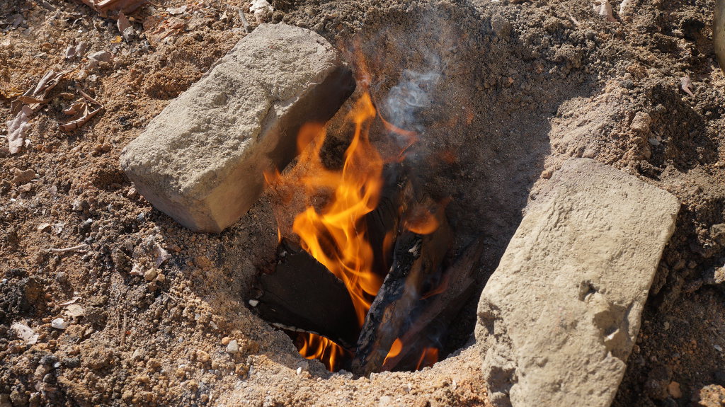 바로 땅속에 두개의 작은 굴을 파고 화덕으로 만들어 스는건데