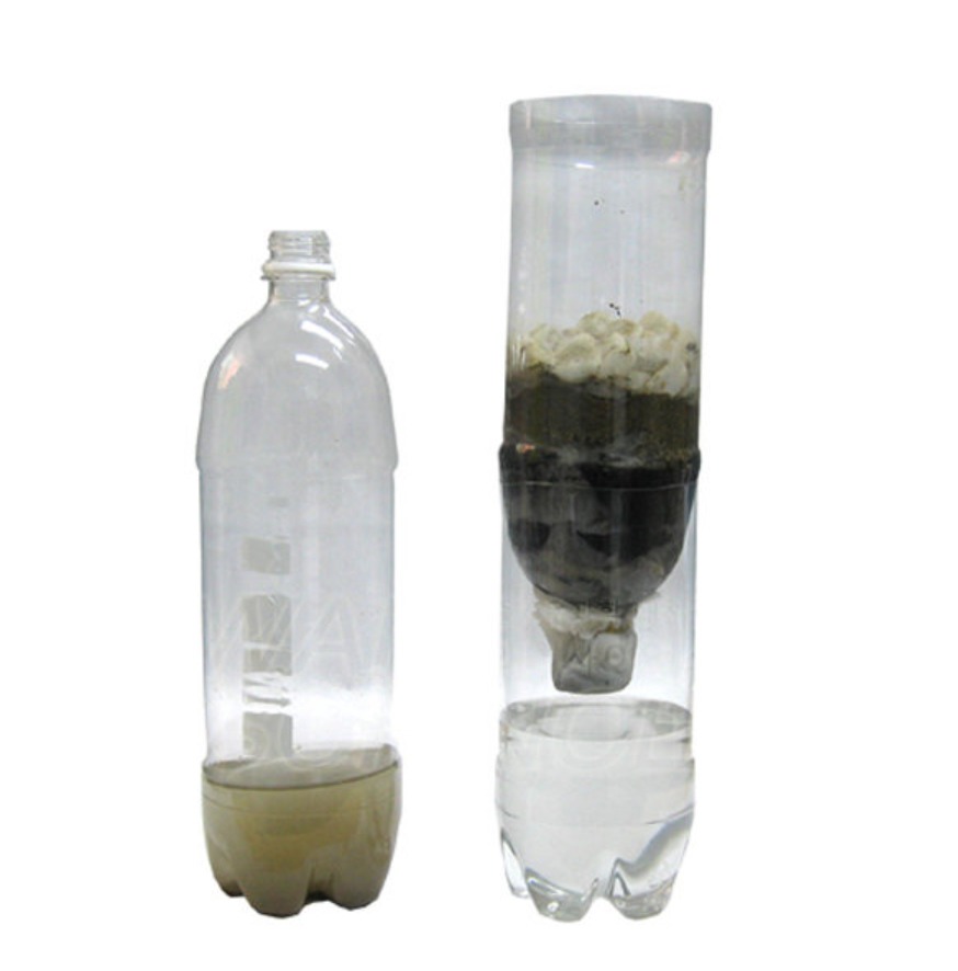 인터넷에선 펫트병안에 숯과 모래, 자갈등을 층층히 넣고 정수할수 있다고하지만