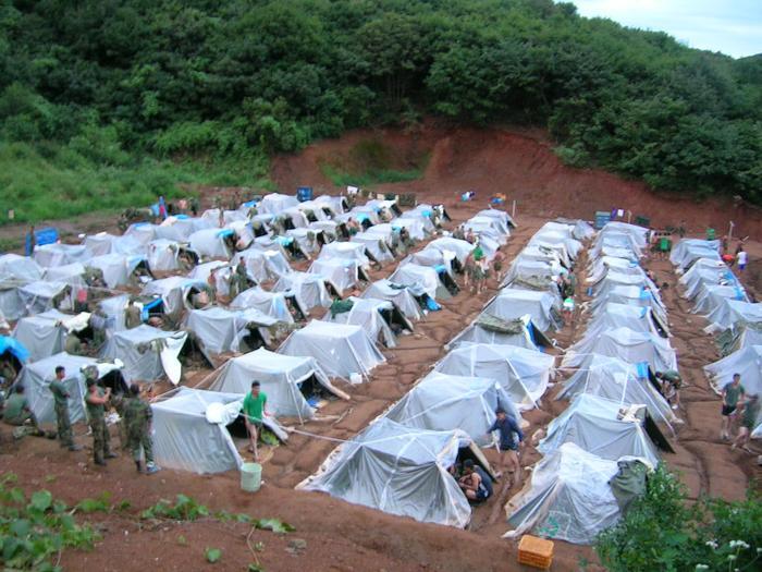 구멍나면 새것으로 바꿔주기라도 하지 비새는 군용텐트땜에 비닐덮고 우리가