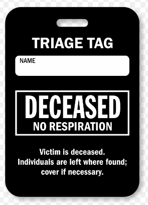 | 검은색 | 기대 / Expectant | 이미 사망했거나 목숨이 끊어지기 직전이며 더 이상의 치료가 의미없는 상태. |