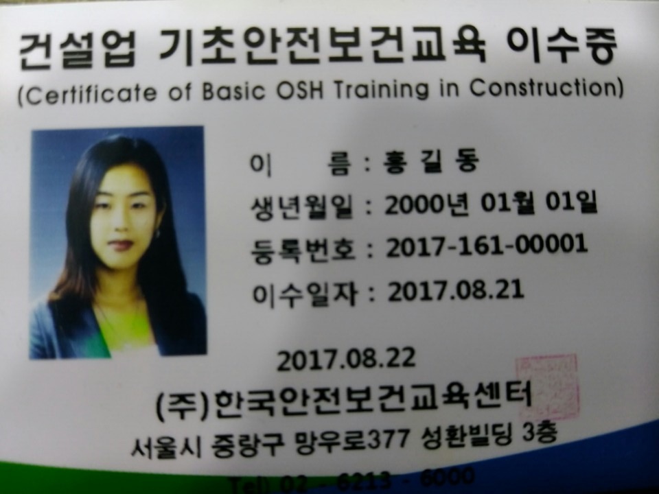 4시간동안 교육을 받으시면 주는 이수증입니다. 이게 없으시면