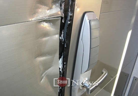 위문은 디지털도어락은 아닌거 같은데..재연을 위해 경찰에서는 아마 투명한 유리문에