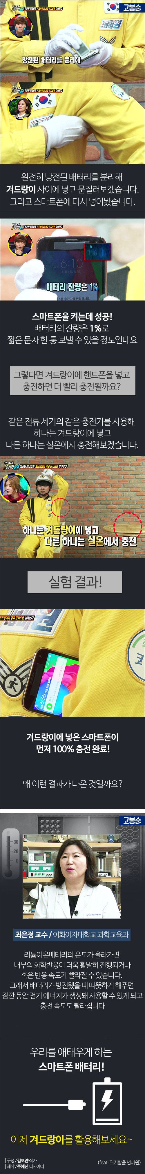 요즘같은 추운 계절에는 야외에서 장기간 활동할 경우 뒷주머니 보다는 상의 가슴쪽에 핸드폰이나 보조 배터리를 넣어서 보관해야 오래 쓸 수 있습니다.