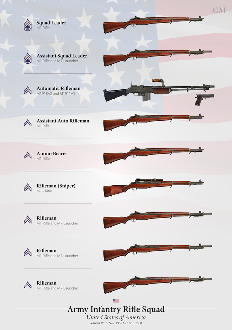 그리고 1명의 분대원은 M1개런드 앞쪽에 총류탄 발사기를 장착