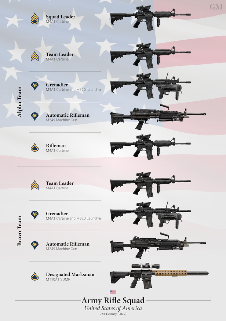 지정사수가 편제되었음 이 덕분에 SDV같은 화기로 저격질 그리고 7.62mm 기관총들로 장거리에서 사격하는 적에 대한 대응능력이 올라감