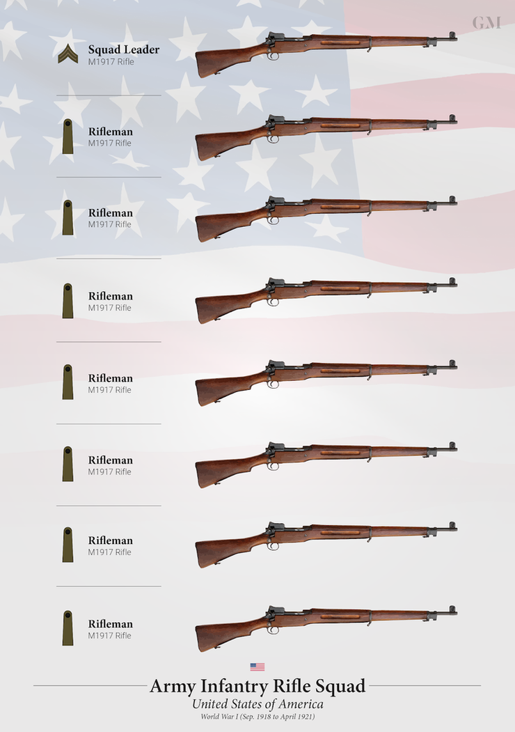 전 인원 볼트 액션 소총인 M1917 스프링필드 소총으로 무장