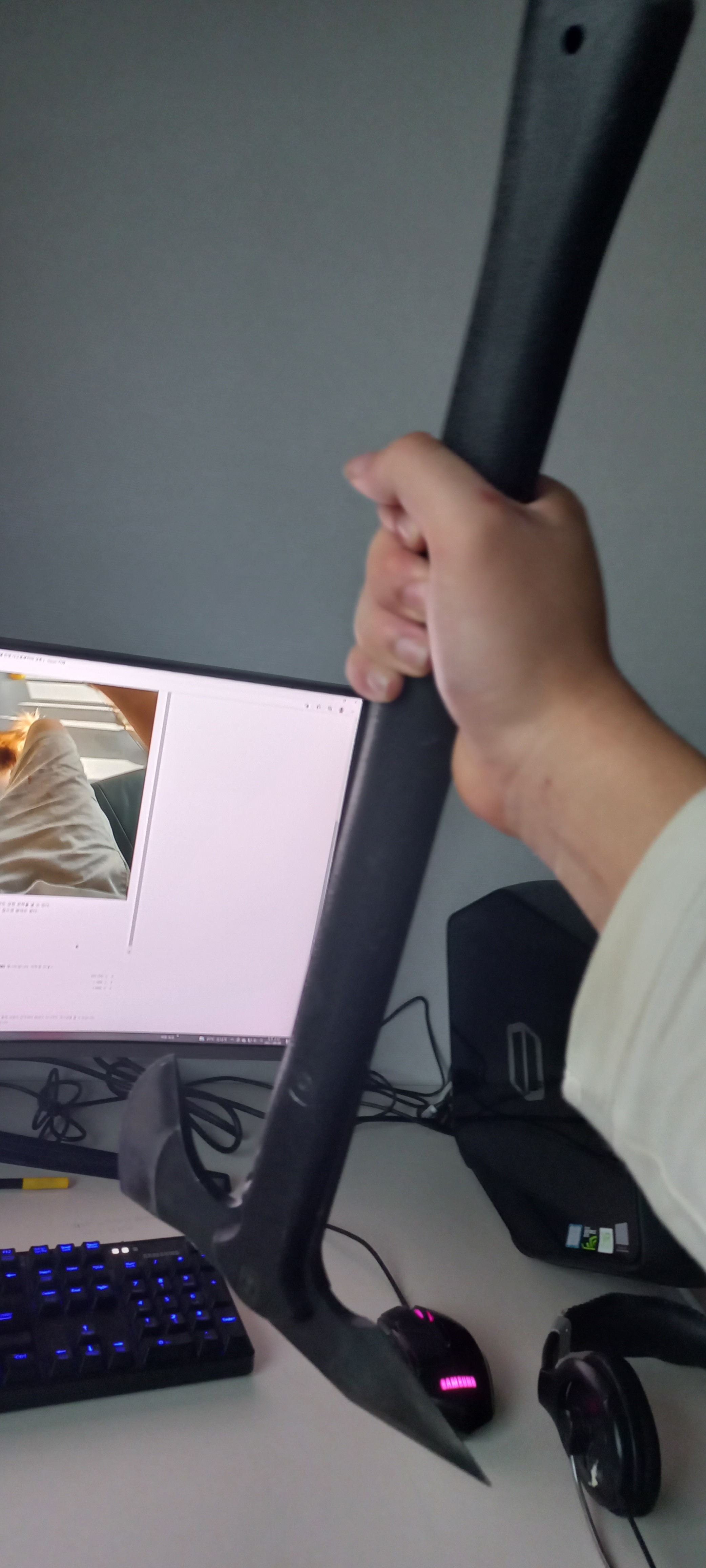야구배트와 같은무게+야구배트와 같은 무게중심+야구배트에 버금가는 가속도+ 날 서있음+금속제.