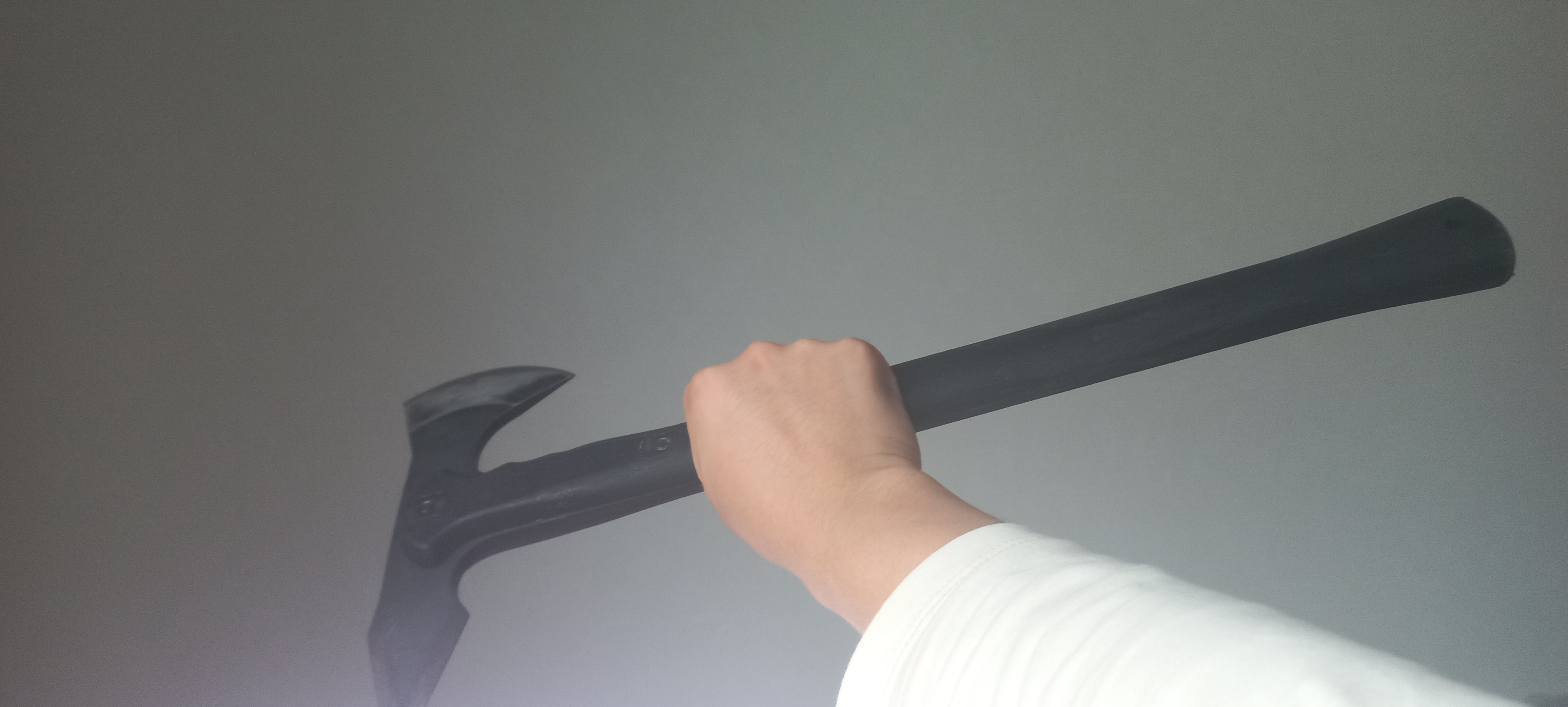 도끼자루를 팔에 붙이거나, 옆으로 쳐내면, 아니면 양손으로 잡고 자루로 막으면 방어도 된다.