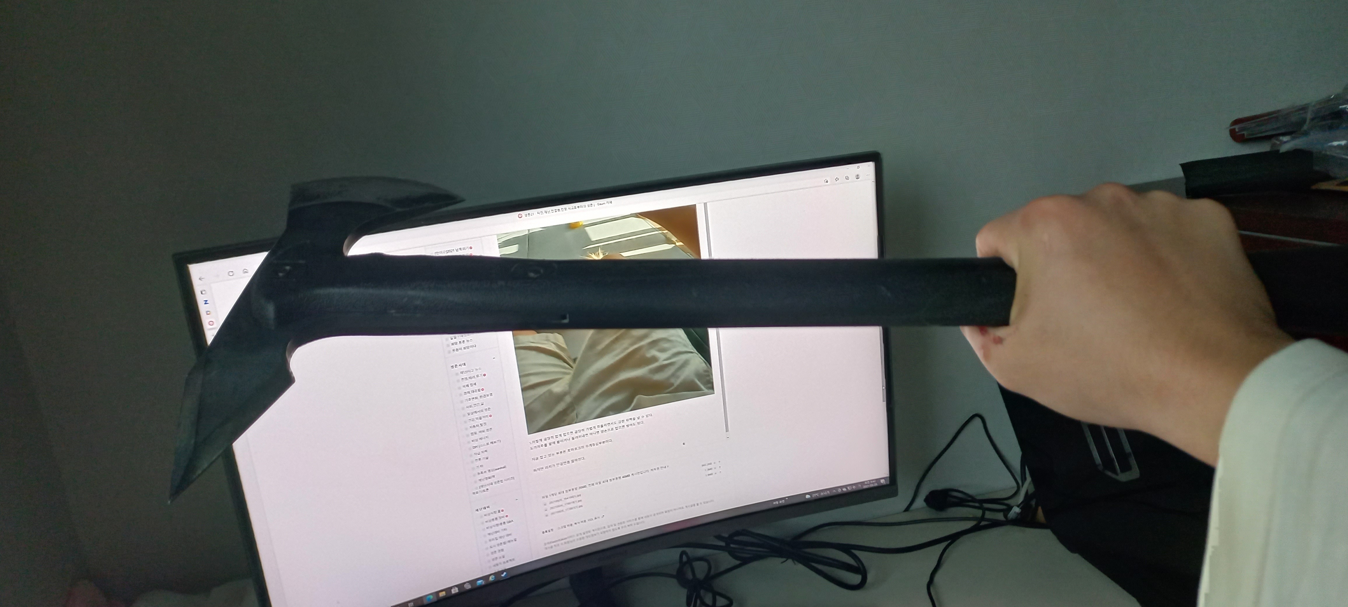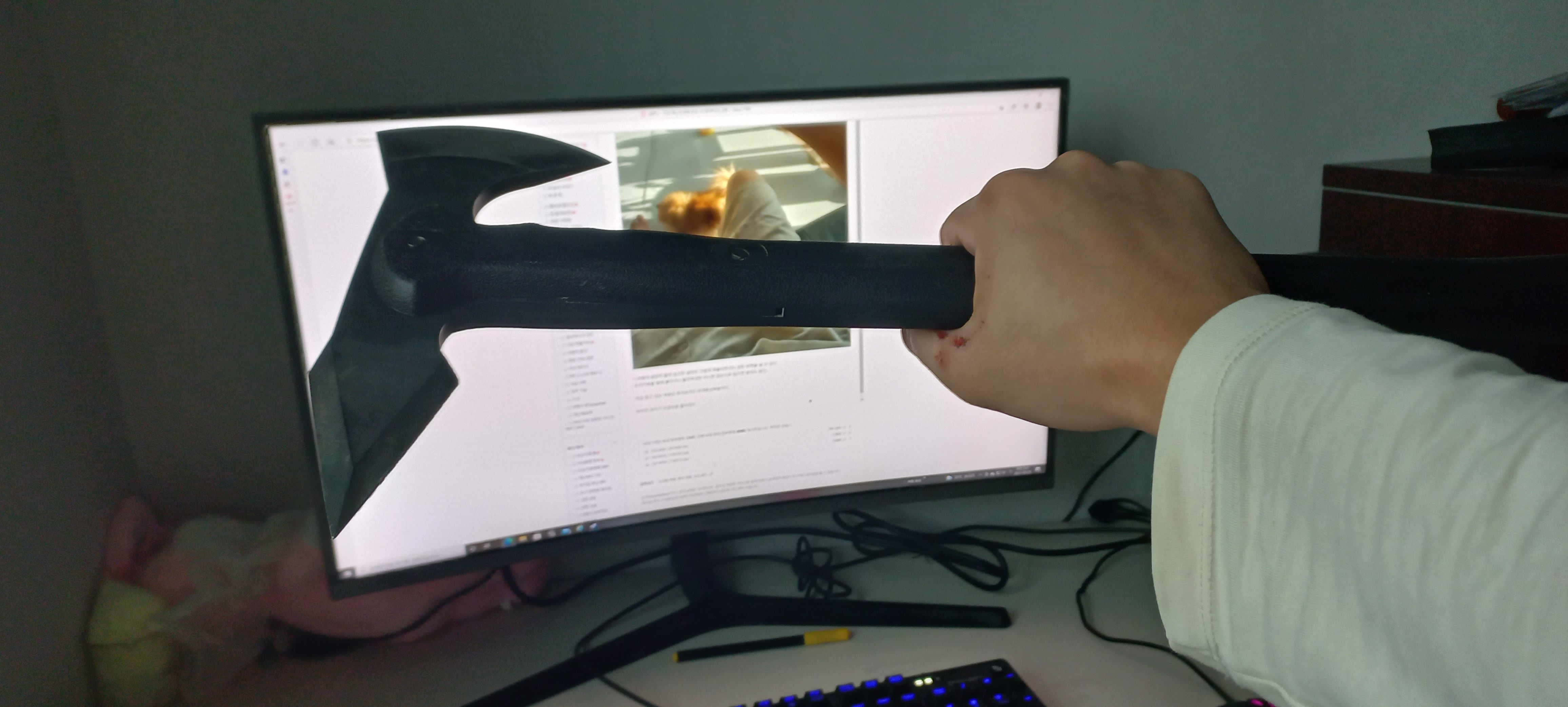 그 틈을 타서 다른 도끼나 날붙이로 공격하면
