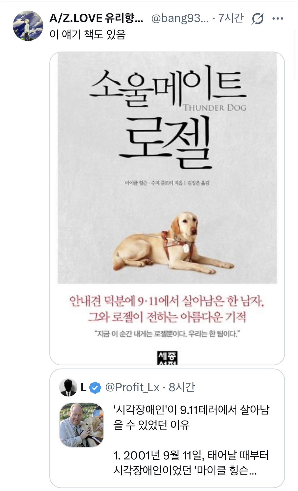 [스크랩] 911테러에서 살아 남은 시각장애인 작성자코난.카페장(경기)|작성시간26.02.13|조회수226 목록 댓글 0 글자크기 작게가 글자크기 크게가 출처: https://x.com/Profit_Lx/status/2022166844103098605 다음검색 스크랩 원문 : *여성시대* 차분한 20대들의 알흠다운 공간 현재 게시글 추가 기능 열기 북마크 공유하기 신고 센터로 신고 댓글 댓글 0 댓글쓰기 답글쓰기 댓글 리스트