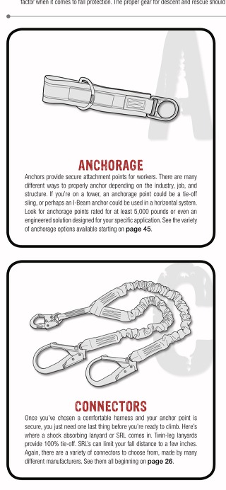 하네스착용하고 기둥이나 타워 프레임에 둘러서 로프 걸어주는 앵커리지 그리고 하강하거나 타워에서 움직일때 걸어주면서 다니는 줄을 하네스 뒤에 달고 줄 타고 내려갈때 속도 조절해주는 데센더 등을 기본 셋팅 해야 합니다.