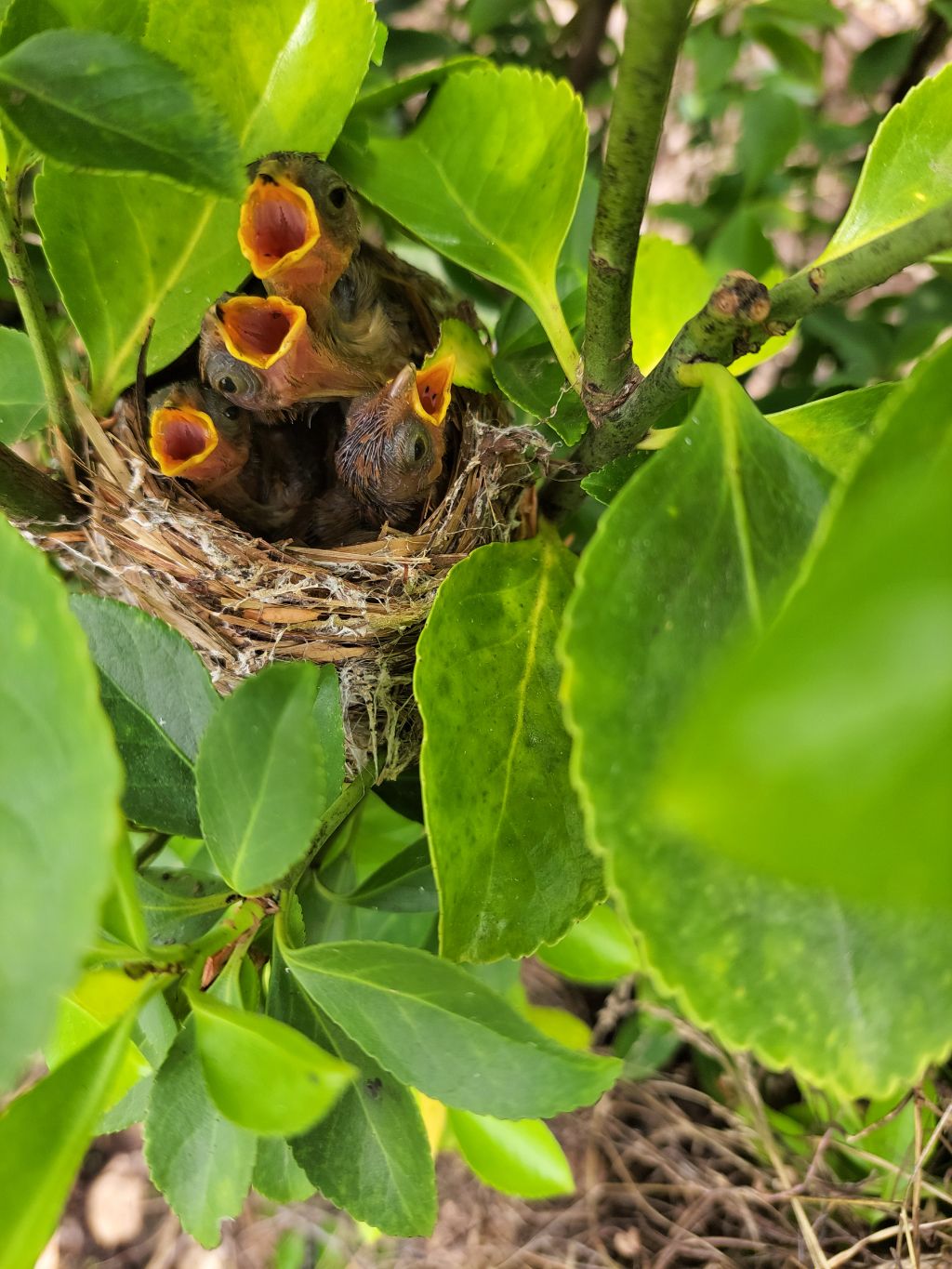 지인 묘목 하우스에서 나무 캐다가 마주친 둥지에 새알이 가득 들어서 작업 중단하고 하우스 주인께 잘 돌봐달라고 신신당부 했는데 다행히 잘 부화해서 어미가 잘 키우고 있네요.