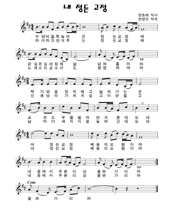 내 정든 교정 - 한동해 작사 / 한영민 작곡 / 김주성 노래 / 서은희 지도 작성자밤하늘|작성시간16.05.05|조회수344 목록 댓글 1 글자크기 작게가 글자크기 크게가 내 정든 교정(김주성).mp3 첨부파일첨부된 파일이 3개 있습니다. jpg 파일 01.jpg 다운로드 jpg 파일 02.jpg 다운로드 mp3 파일 내 정든 교정(김주성).mp3 다운로드 다음검색 현재 게시글 추가 기능 열기 북마크 공유하기 신고 센터로 신고 댓글 댓글 1 댓글쓰기 답글쓰기 댓글 리스트 작성자spirit | 작성시간 16.05.06 노래 잘부르네요.목소리에 힘도넘치고발음도 촣구요.배움의터전 정든교정을잘 표현해 주고있네요.잘들었습니다. 댓글 전체보기