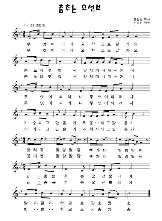 춤추는 오선보 / 홍영순 작사 / 지애선 작곡 / 전혜진 등 노래 / 박매화 지도 작성자밤하늘|작성시간18.09.28|조회수280 목록 댓글 0 글자크기 작게가 글자크기 크게가 춤추는 오선보(전혜진)등.mp3 첨부파일첨부된 파일이 3개 있습니다. jpg 파일 01.jpg 다운로드 jpg 파일 02.jpg 다운로드 mp3 파일 춤추는 오선보(전혜진)등.mp3 다운로드 다음검색 현재 게시글 추가 기능 열기 북마크 공유하기 신고 센터로 신고 댓글 댓글 0 댓글쓰기 답글쓰기 댓글 리스트