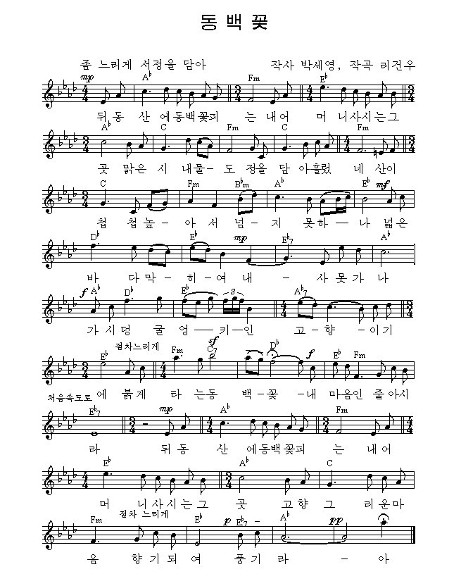 동백꽃 - 박세영 작사 / 리건우 작곡 / 김송미 노래 / 허문학 편곡 작성자밤하늘|작성시간13.04.05|조회수1,271 목록 댓글 0 글자크기 작게가 글자크기 크게가 "피아노,기타 연주 김송미" 09.mp3 첨부파일첨부된 파일이 3개 있습니다. jpg 파일 Image7.jpg 다운로드 mp3 파일 09.mp3 다운로드 jpg 파일 동백꽃.jpg 다운로드 다음검색 현재 게시글 추가 기능 열기 북마크 공유하기 신고 센터로 신고 댓글 댓글 0 댓글쓰기 답글쓰기 댓글 리스트