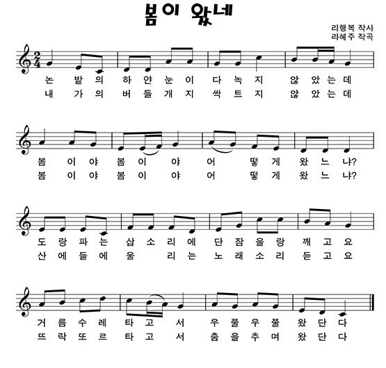 봄이 왔네 - 리행복 작사 / 라혜주 작곡 / 악보 작성자밤하늘|작성시간18.02.25|조회수491 목록 댓글 0 글자크기 작게가 글자크기 크게가 다음검색 현재 게시글 추가 기능 열기 북마크 공유하기 신고 센터로 신고 댓글 댓글 0 댓글쓰기 답글쓰기 댓글 리스트