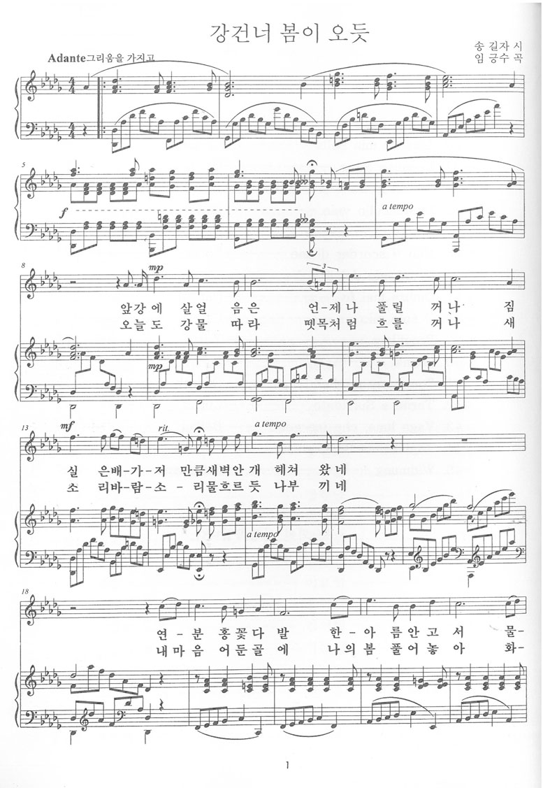 강 건너 봄이 오듯 / 송길자 작사 / 임긍수 작곡 / 피아노 악보 작성자박문국|작성시간23.06.28|조회수3,097 목록 댓글 0 글자크기 작게가 글자크기 크게가 다음검색 현재 게시글 추가 기능 열기 북마크 공유하기 신고 센터로 신고 댓글 댓글 0 댓글쓰기 답글쓰기 댓글 리스트