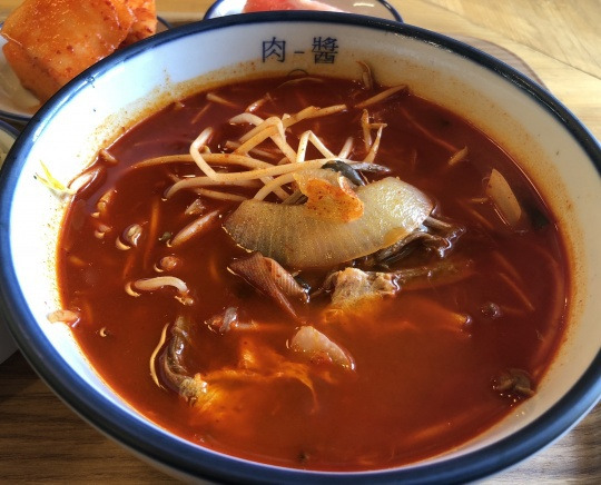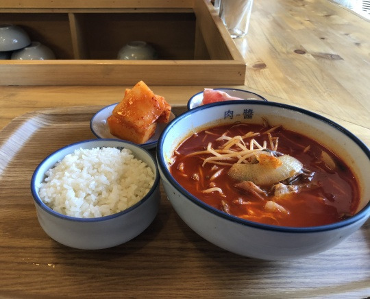 ▲후기(식신 빕규르망): 국물이 이 정도일 줄 알았다면 어젯밤 술 좀 마실걸 그랬나 보다... 중간에 나가서 깡소주 나발이라도 불고 오고 싶었다ㅋㅋ 솥에서 푹 끓여 바로 내는 스타일이 아니고 주문 후 잘 우러낸 국물과 한 번 더 조리를 해서 국물은 국물대로 진하고 야채는 살아있다. 깍두기도 먹음직스럽게 큼직큼직하고 매콤한 입 청소하라고 자몽도 한 조각 같이 주신다. 좋은 브런치였다 ㅋㅋㅋ