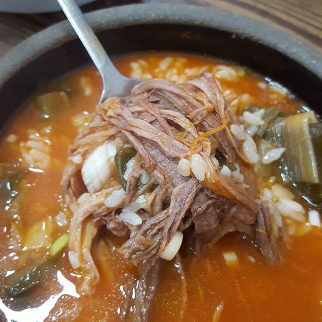 ▲후기(식신 몽글몽글~): 청주사람이라면 다~안다는 육개장 맛집. 단체 손님도 한 번에 받아내시는 내공 깊은 사장님 장사스킬 ㅋㅋ 볼 때마다 감탄합니다 ㅋ 그날그날 적당한 양만 끓여내서 건더기들 식감이 살아있습니다.