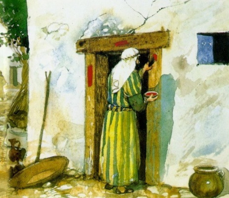 '그리고 그 피를 받아서, 짐승을 먹을 집의 두 문설주와 상인방에 발라라' (7) '그리고 그 피는 받아서'로 번역된 '웰라케후 민 핫담'(wellaqehu min hadam)에서, '~로부터' 라는 뜻의 전치사 '민'(min)을 사용하고 있으며, 또한 '피'를 뜻하는 '담'(dam)에 전치사 '하'(ha)를결합하여 그 피가 어떤 피인지 정확히 지적하고 있다. '그 피'는 탈출기 12장 5절의 '어린 양의 피' 여야 한다. 다른 피를 발라서는 아무런 효과도 없고, 이집트 신들과 함께 죽임을 당할 것이다. 그러나 어린 양의 피로부터 집에 바를 피를 취하여 바른 자는 생명을 보장 받는다. 이처럼 하느님의 구원은 반드시 하느님께서 명하신 그대로 철저하게 이행될 때 이루어진다. 그것은 바로 파스카 어린 양이 대표하는 그리스도의 보배로운 성혈의 공로를 입는 것이다. 피를 바른 곳이 '양편 기둥들과 문윗기둥'(on the two side posts and the upper doorpost), 즉 각 집의 출입구에 있는 문을 지탱하는 좌우 기둥과 위에 가로로 댄 기둥임을 보여준다. 문을 둘러싼 네 개의 기둥 가운데 사람들이 밟을 수 있는 문지방을 제외한 세 개에 모두 피를 바른 것이다. 한편 당시 집의 출입구는 집 자체를 대표했기 때문에(탈출20,10; 신명5,14; 12,7) 이곳에 피를 바르는 행위는 곧 집 전체에 피를 바르는 상징적 행위이라고 볼 수 있다. 이런 행위는 이방 종교의 주술적인 행위가 아니고, 성경 전체를 통해 일관되게 나타나는 하느님의 계약가 관련된 것이다. 하느님께서 처음 받으신 아벨의 제사가 양 떼의 맏배들을 죽여서 드리는 어린 양의 피의 제사였고 (창세4, 4), 노아가 홍수 후에 드린 제사도 정결한 새들 가운데 죽여서 드리는 피의 제사였으며 (창세8, 20), 아브라함이 하느님께 드린 제사도(창세15, 9) 암송아지와 암염소와 숫양과 산비둘기와 집비둘기를 죽여서 드린 피의 제사였다. 하느님께서는 이렇게 '생명을 상징하는 피'를 흘리는 제사를 통해 인간의 죄를 용서하시고 생명을 구하시는 은혜를 베풀어 주셨던 것이다. 집의 출입구에 있는 기둥들에 피를 뿌리는 첫번째 파스카절에만 행해지는 이 의식도 대속적인 피를 통해서만 생명의 구원을 얻을 수 있다는 구원사적 원리에 따라 이루어졌다. '그날 밤에 그 고기를 먹어야 하는데, 불에 구워, 누룩없는 빵과 쓴나물을 곁들여 먹어야 한다' (8) 고기를 불에 굽는 이유는 물에 삶는 것보다 짧은 시간에 간편하게 요리할 수 있기 때문이다. 따라서 하루밤 사이에 이집트를 떠나야 하는 이스라엘 백성들에게 고기를 삶지 않고 구워야 하는 이 규정은 꼭 지켜야 할 내용이다. 또 '누룩없는 빵'(무교병) 즉 발효되지 않은 누룩없는 빵을 먹어야 하는 명령에서도 이스라엘 백성이 이집트를 떠나 가나안으로 향하는 일의 급박성을 느낄 수 있다. 고기를 삶고 있거나 빵을 발효시킬 시간적 여유가 없을 정도로 촉박하고 시급함을 나타낸다. 이스라엘 백성이 이 명령을 중요하게 생각하지 않고, 어린 양을 잡아 삶고 있었거나 빵을 발효시키는 일로 시간을 지체하고 있었다면, 그 밤에 이집트에 임한 재앙으로 인해 서둘러 그들을 내보내려 했던 파라오의 마음이 변했을지도 모른다. 동시에 이스라엘 백성 역시 비록 노예이지만 안전과 생계가 보장되는 이집트를 떠나 미지의 땅 가나안을 향해 가야한다는 사실이 시간이 지체될수록 망설여졌을 것이다. 이처럼 구원의 문제는 하느님의 명령과 말씀을 듣는 순간에 즉각적인 결단과 순종이 따라야 하는 것이다. '누룩없는 빵'(무교병)에 해당하는 '맛쵸트'(matsoth; unleavened bread; bread made without yeast)는 '발효되지 않은 빵' 이다. 이러한 빵은 발효되는데 소요되는 시간을 줄임으로써 빨리 준비할 수 있는 양식이었다. 그래서 갑자기 찾아온 손님을 대접하는 데도 용이했다(창세19,3; 판관 6,19-21; 1사무28,24). 따라서 '누룩없는 빵'을 먹으라는 것은 급히 서두르라는 의미가 있다. 이와 더불어 '누룩'이라고 하는 것은 '죄'를 상징하는 경우도 있다. 그래서 어떤 제사에서는 누룩없는 빵만 드려져야 했다(탈출28,13; 레위2,11; 6,14-18). 따라서 지금 이집트를 떠나는 이스라엘 백성에게 굳이 누룩없는 빵을 먹으라고 하는 이유 가운데 하나는 과거 이집트에서 하느님을 모르고 살 때 그 곳의 풍속을 쫓아 살던 모든 죄들을 버리라는 의미가 있다. 한편 '누룩없는 빵'을 먹을 때에는 쓴나물도 곁들여 먹어야 했다. 쓴 나물을 먹을 때에 느끼는 쓴 맛은 이스라엘 백성으로 하여금 이집트에서의 쓰라린 삶을 기억나게 만들었을 것이다. 마찬가지로 '누룩없는 빵' 역시 신명기 16장 3절에서는 '고난의 빵'이라고 말한다. 이것을 통해 볼 때, '누룩없는 빵' 과 '쓴 나물'을 함께 먹는 것은 이집트에서 우상을 섬기고 죄를 짓고 살던 과거의 삶을 쓰라린 삶이요, 고난의 삶으로 기억하게 하기 위함임을 알 수 있다. 이스라엘 백성들은 이집트를 떠난 뒤에도 파스카절 절기를 지킬 때마다 '누룩없는 빵'을 쓴 나물과 함께 먹으면서 자신의 죄가 아직 남아 있는지를 점검하게 되고, 그 고난과 고통의 생활로부터 구원하신 하느님께 감사하는 마음을 갖게 되는 것이다. '그것을 먹을 때는, 허리에 띠를 매고 발에는 신을 신고 손에는 지팡이를 쥐고, 서둘