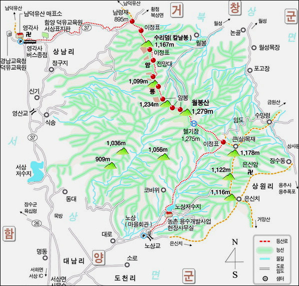 *산행코스 : 남령재-칼날봉(수리덤)- 월봉산-큰목재-수망령-내계폭포-내계마을-주은 휴양림