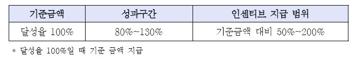 100%를 달성했을 때의 인센티브 금액을 기준으로 최대 몇 % 또는 최대 얼마까지 지급할 것인가와 목표달성을 못했을 경우 인센티브 지급범위 즉 성과구간과 이에 따른 지급범위를 설정하는 것이다. 오리온은 매출성장과 시장확대를 위해 성과가 크면 더 많은 인센티브를 지급하고 있으며 이는 강한 동기부여와 함께 매출성장에 기여하는 것으로 볼 수 있다.