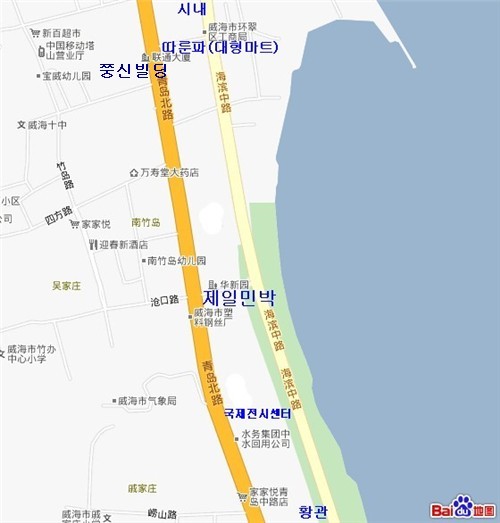 -제일민박은 위해에서 한국인이 많이 거주하고 있는 위해국제전시센터 부근에 바다가에서 50 미터거리 위치해 있습니다.